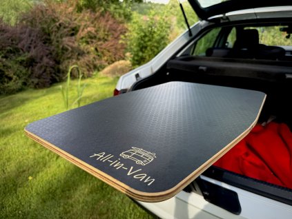 Polohovatelný stolek do zámku zadních dveří osobního auta nebo dodávky, navržený pro pohodlí na cestách. Chilldesk by All-in-Van rozšíří tvůj prostor na vaření, práci nebo...