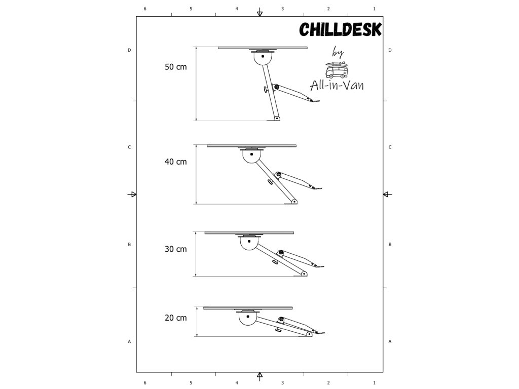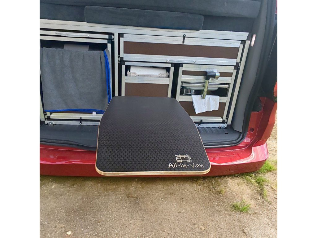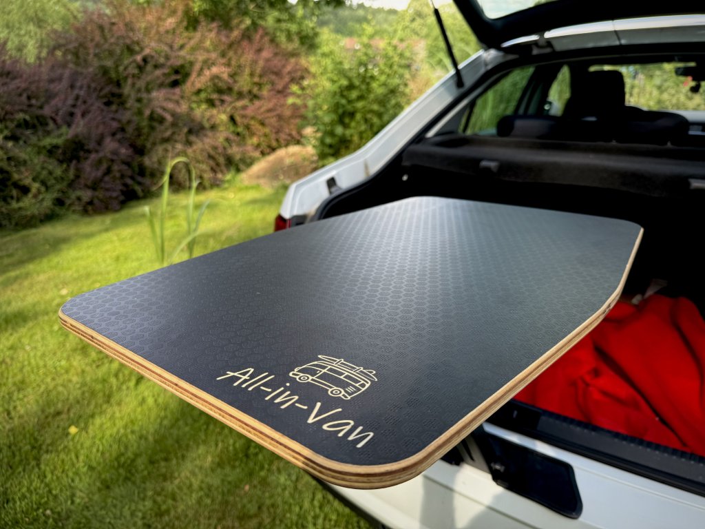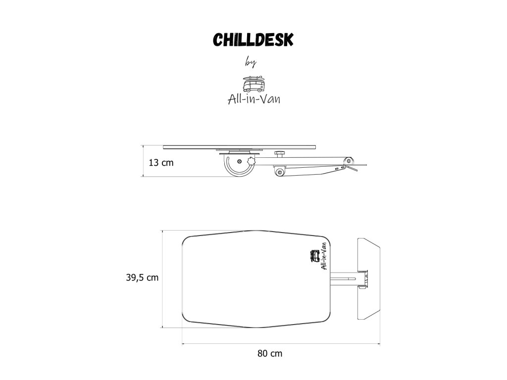 Chilldesk All-in-Van je promyšlený skládací stolek navržený pro upevnění do zámku zadních (pátých) dveří většiny osobních aut a dodávek. Ať už potřebuješ prostor na vaření, práci, nebo jen pohodové odložení kávy při východu slunce – Chilldesk je tu vždy připraven rozšířit tvůj kempovací prostor.
