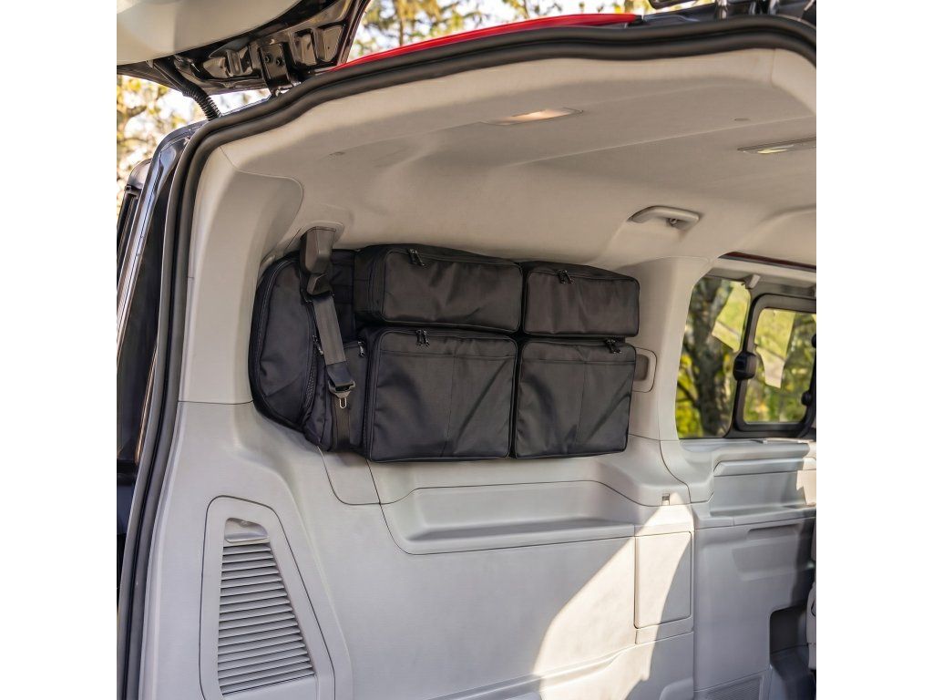 Kapsy drží tvar i při plném zatížení a díky uchycení na suchý zip je můžete jednoduše odepnout a vzít s sebou – třeba do sprchy, do stanu nebo jen přehodit na jiné místo.