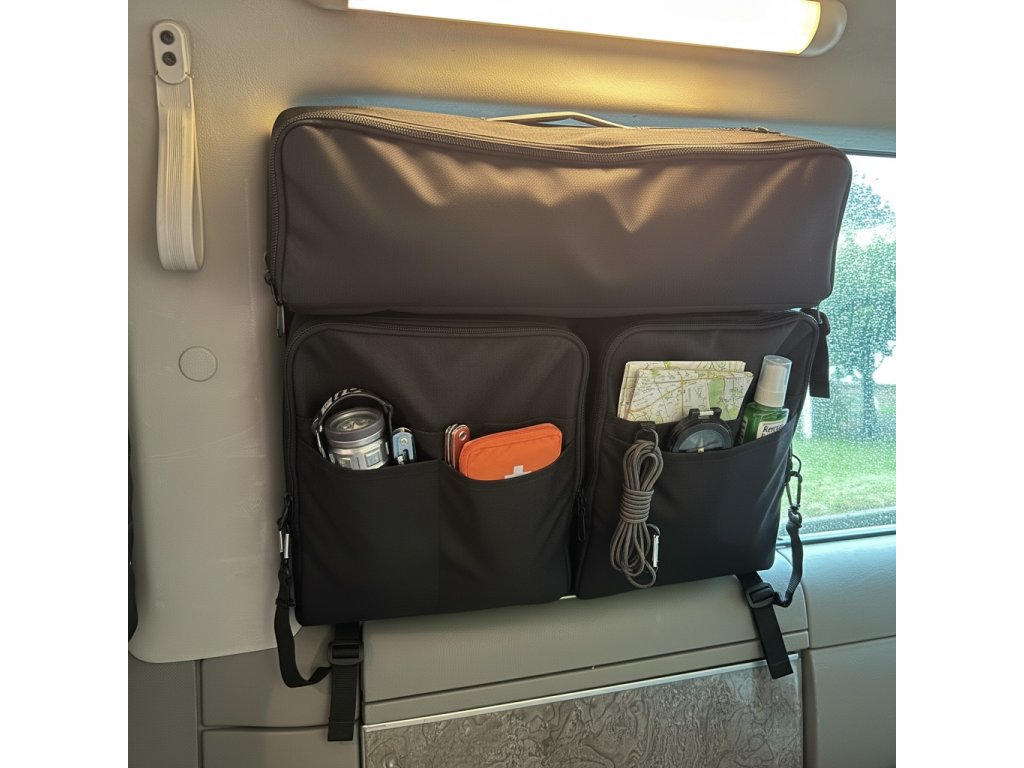 Díky suchým zipům na zadní straně kapes lze kapsy z kapsáře odepnout a využít je i mimo vůz. Každá kapsa je navržena tak, aby poskytla maximální úložný prostor. Z přední části jsou připravené kapsy na drobnosti jako telefon, brýle apod. Uvnitř kromě velké kapsy najdete další dvě kapsy na zip