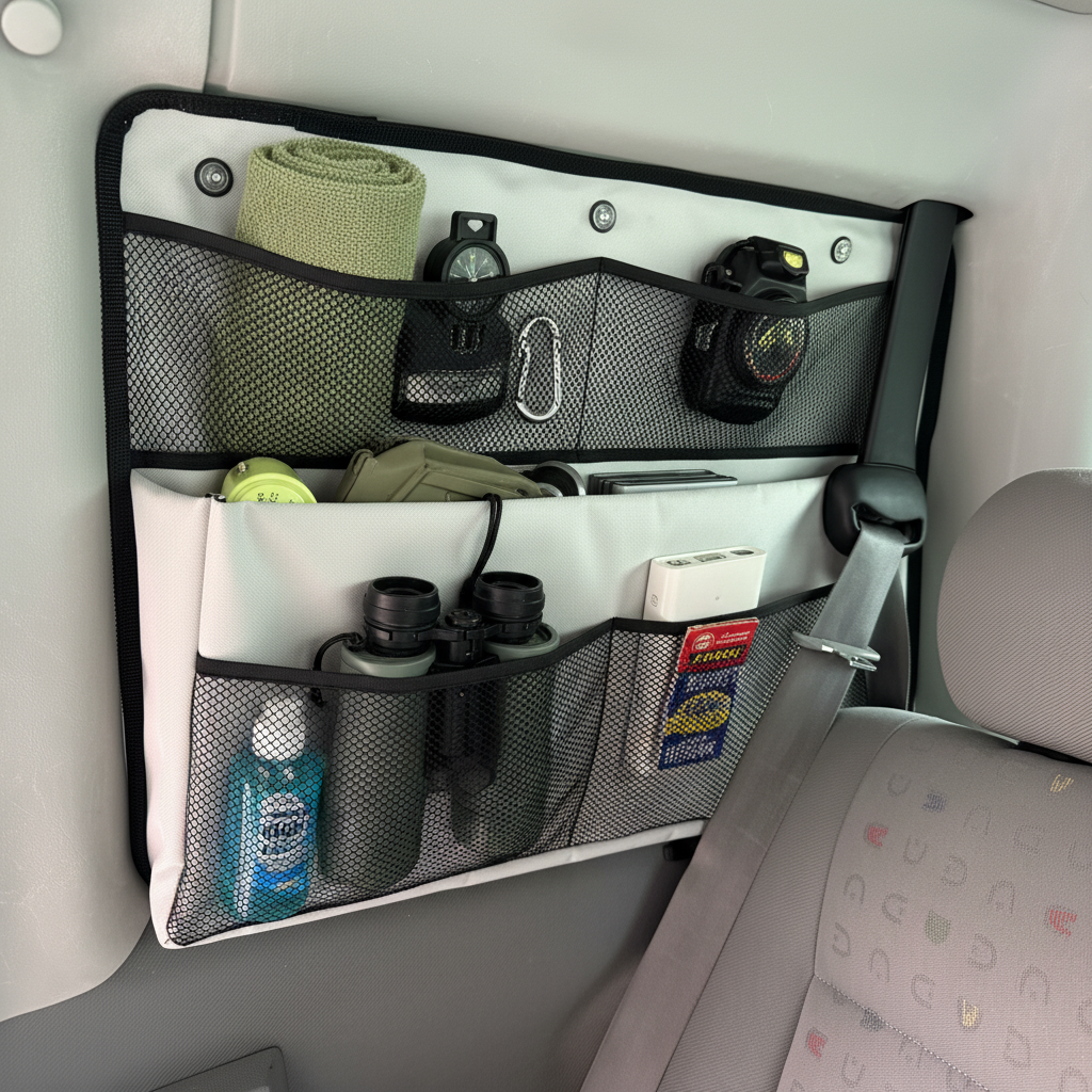 Díky pevnému základu, vyztužení a kvalitnímu materiálu kapsář drží tvar i při vyšší zátěži, nic se nehroutí a každý kus vybavení má své místo. Je to ideální řešení pro drobnosti, elektroniku, hygienu, lékárničku i vše, co chcete mít neustále po ruce.