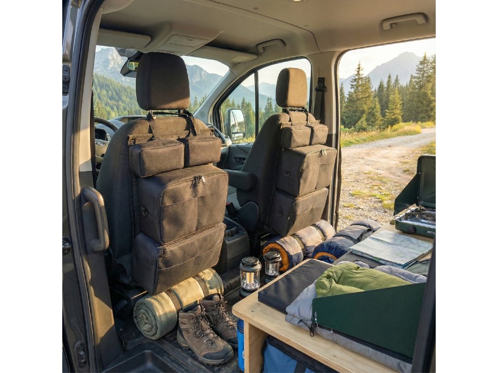 Spodní kapsy lze využít například k uložení bot, povinné auto výbavy apod. Prostřední kapsa může skvěle posloužit na uložení oblečení, spacáku nebo jiného kempingového vybavení. Horní dvě kapsičky poslouží k uložení drobnějších věcí, od nabíječky po hygienické potřeby.
