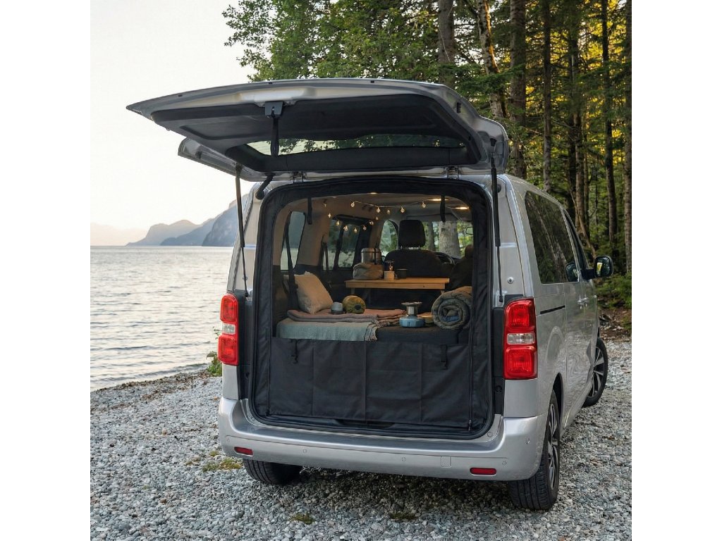 Moskytiéry pro zadní výklopné dveře i boční posuvné dveře vozů Peugeot Traveller jsou navržené s cílem zachovat pohodlí a přirozené větrání během kempování, aniž by se dovnitř dostával hmyz. Když spíte nebo odpočíváte s otevřenými dveřmi, běžné síťky často nestačí — tato varianta je přímo přizpůsobená tvaru dveří tohoto modelu