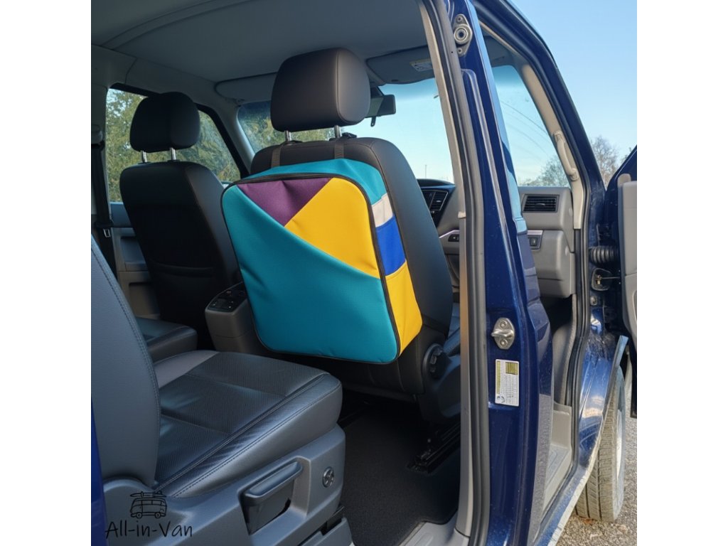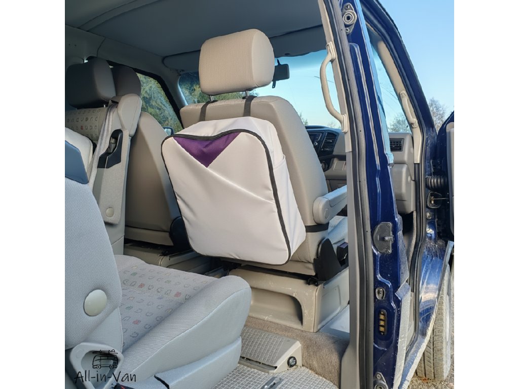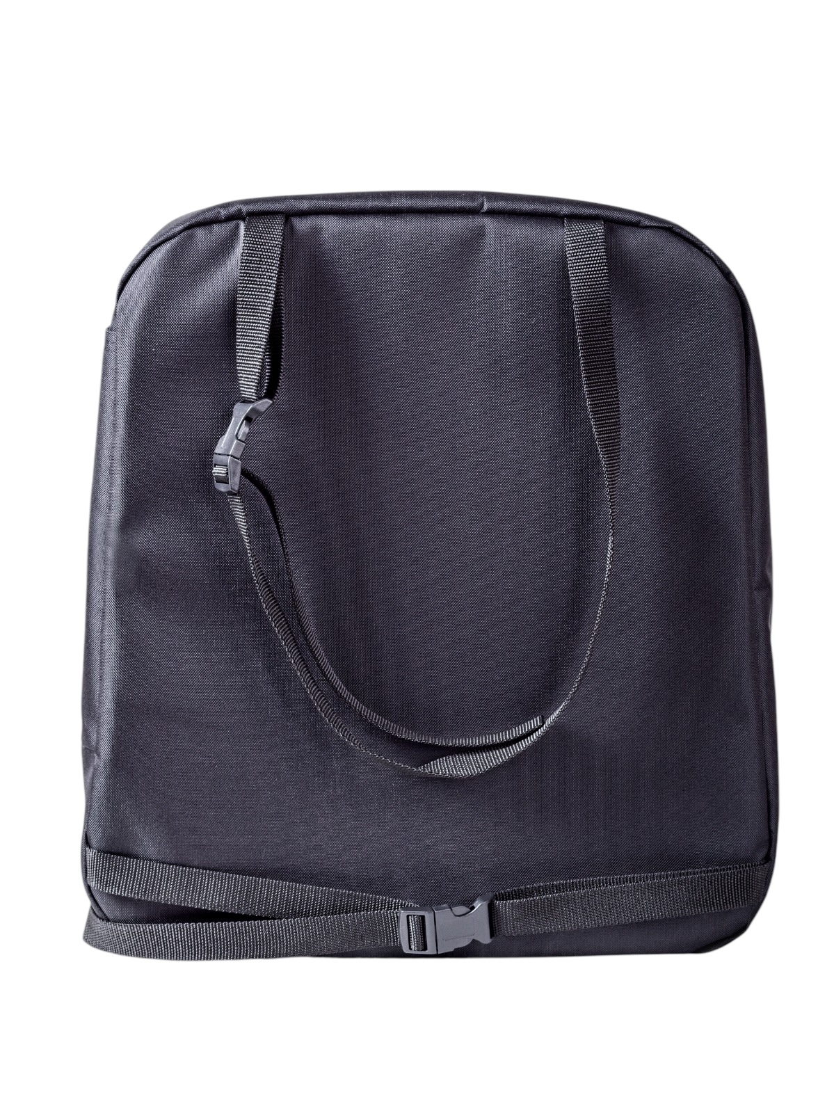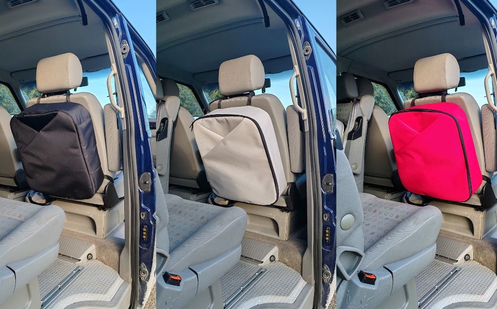 Tato revoluční novinka kopíruje tvar sedadla a její rozměry zajišťují, že nepřekáží při otáčení sedadel během kempování, ani neomezuje cestující v prostoru za sedadlem. Připevnění k sedačce pomocí nastavitelných popruhů umožňuje snadné přizpůsobení, což činí tašku univerzální pro jakoukoliv autosedačku.